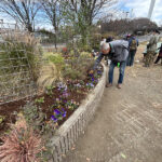 会員提供の花苗を植え付け、会長が運んでくれた堆肥を手分けして敷き詰め、無事作業を終えました。