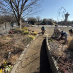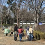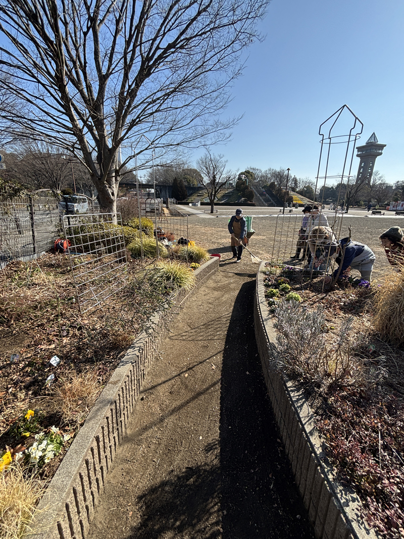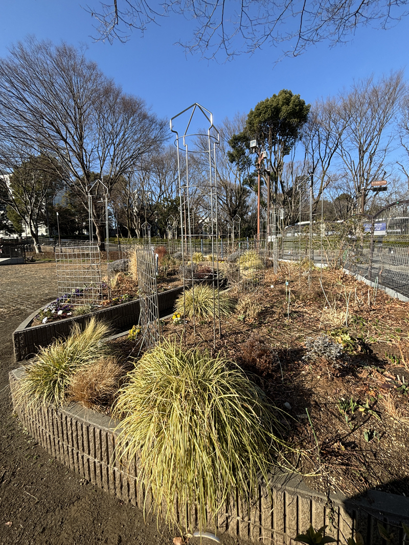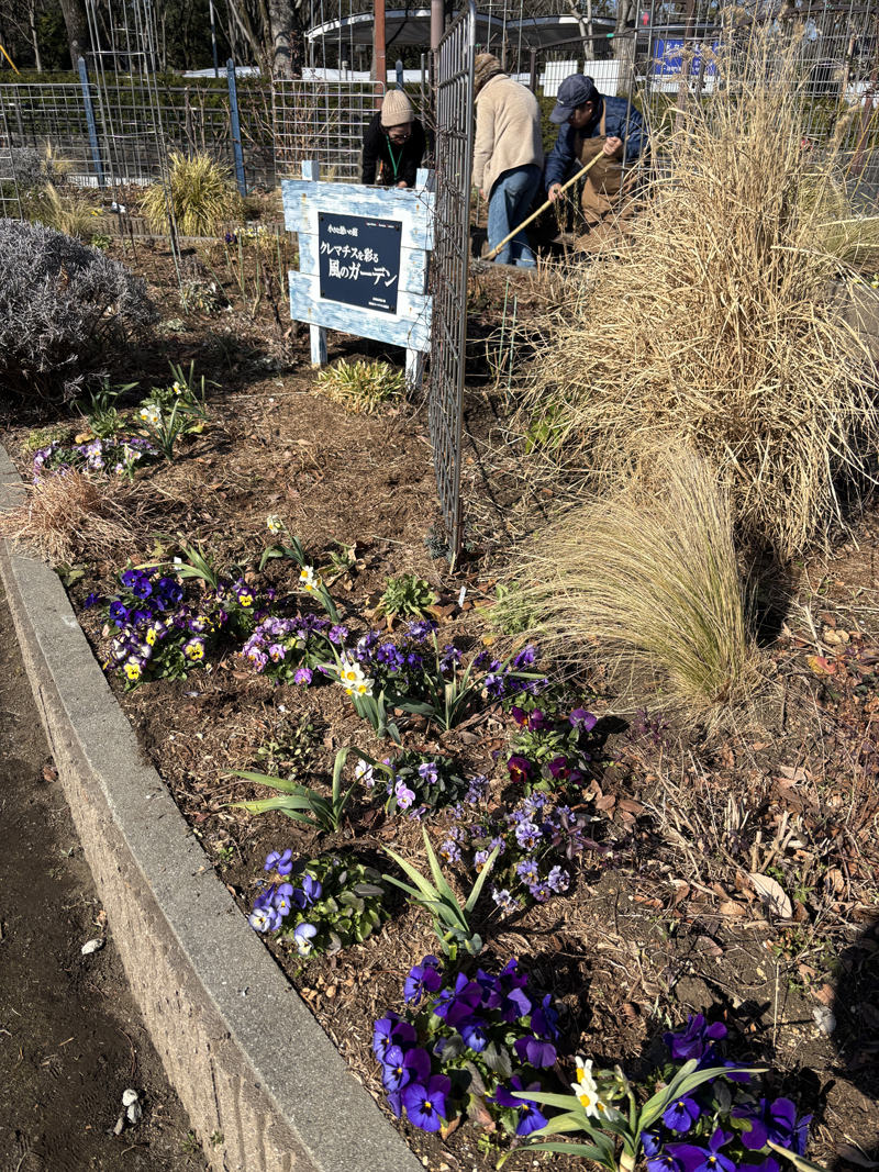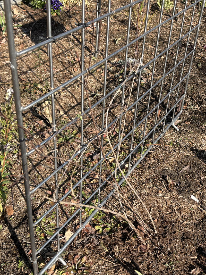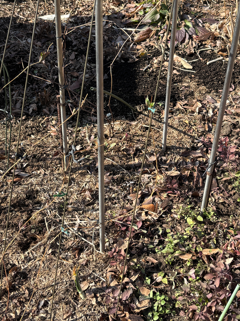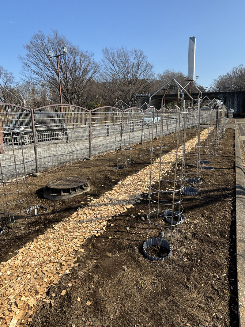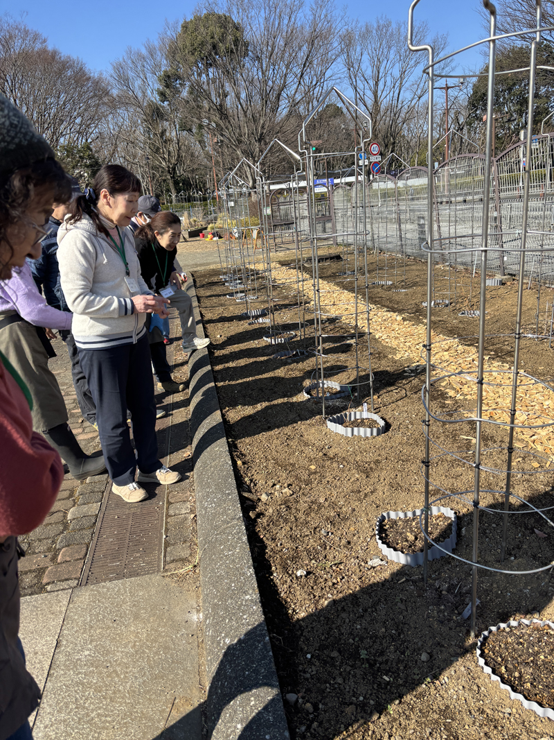 1時間ほどガーデンで花がら摘みと草木の剪定とクレマチスの誘引を行い、その後先月植え付けを行ったBブロックの芽出しの様子を見回りました。