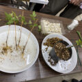 その後事務所入り口のクレマチスの枝を整理して、誘引し直し、薬剤散布についての勉強会も行いました。