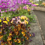 参加者14名、ガーデンは誘引と会員提供の草花の苗を植え付けました。