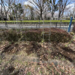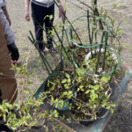その後、事務所裏に置いてあるレスキュー苗達の蔓を整理して、誘引しました。