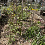 ガーデン左側のオベリスク4本に、先日レスキューしました名前がわからないクレマチスを植え付けました。