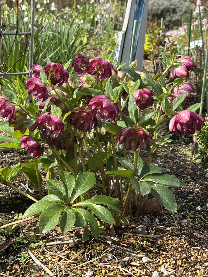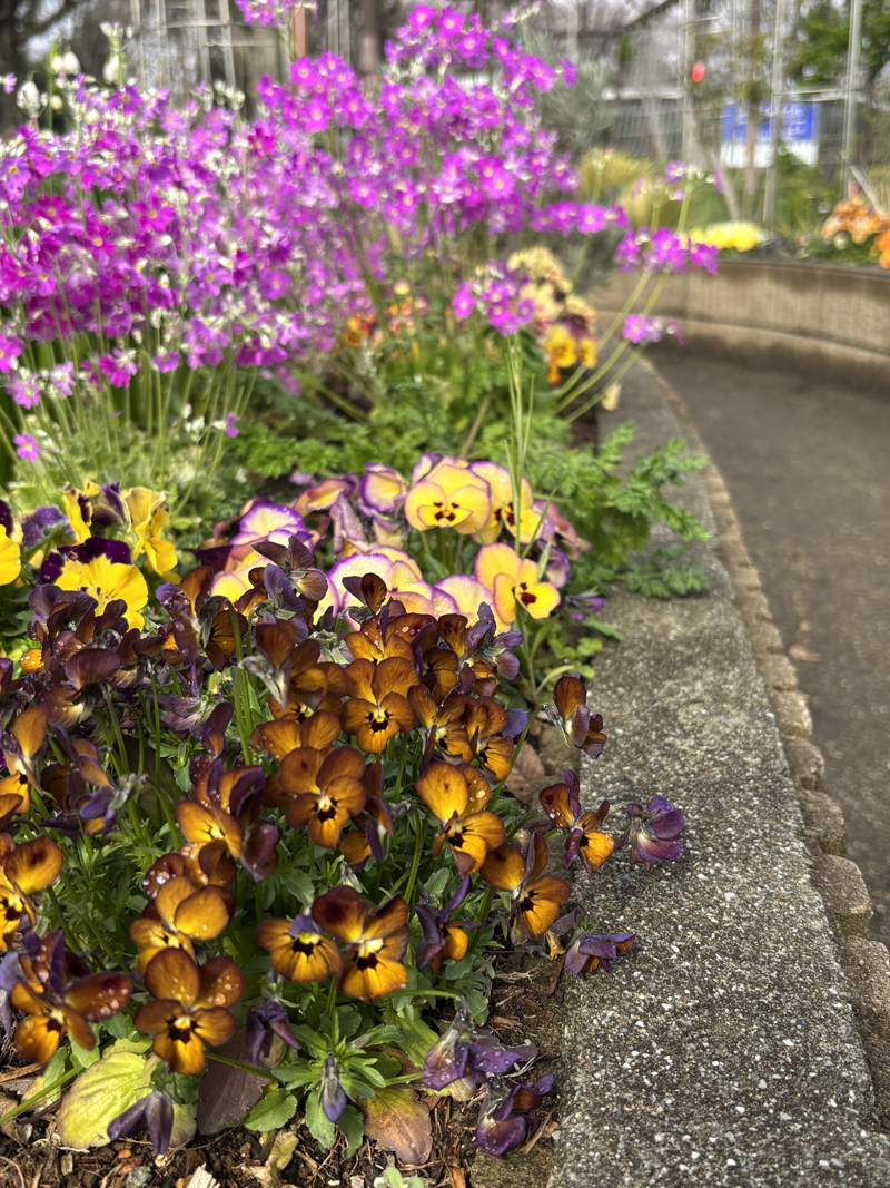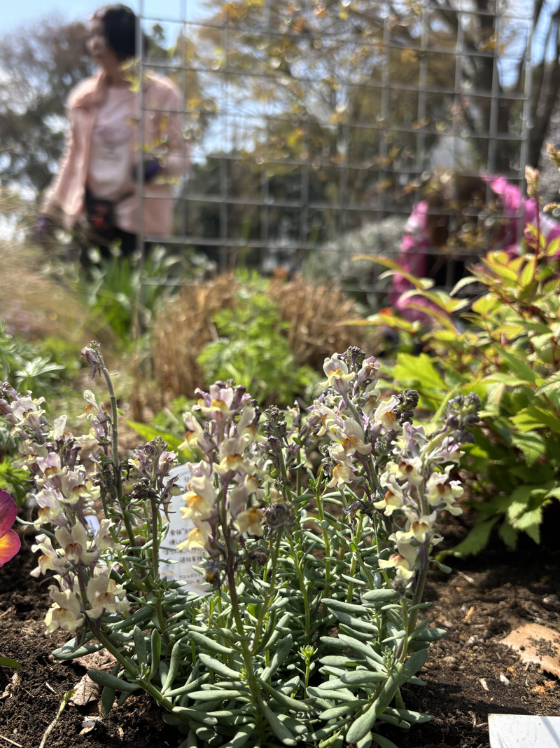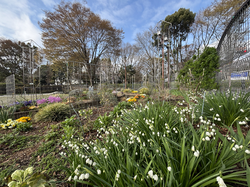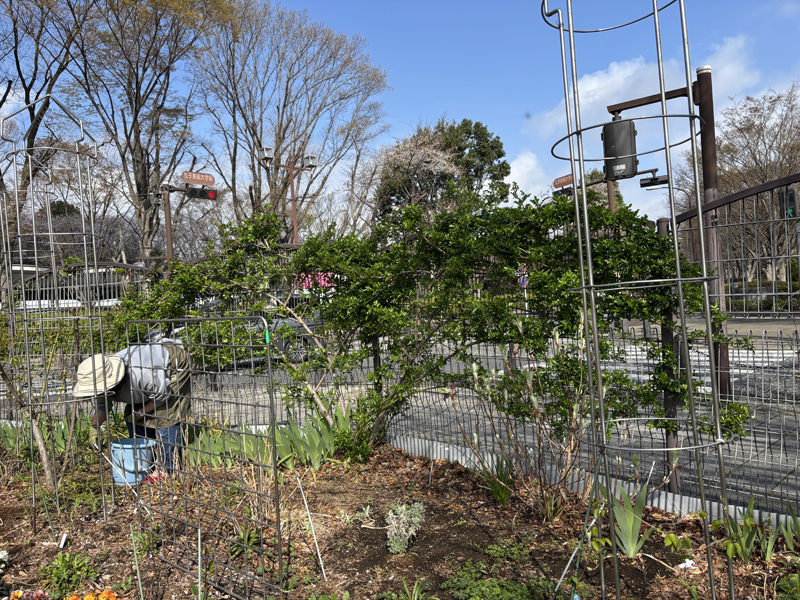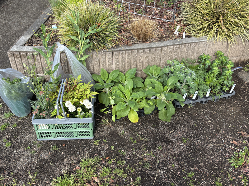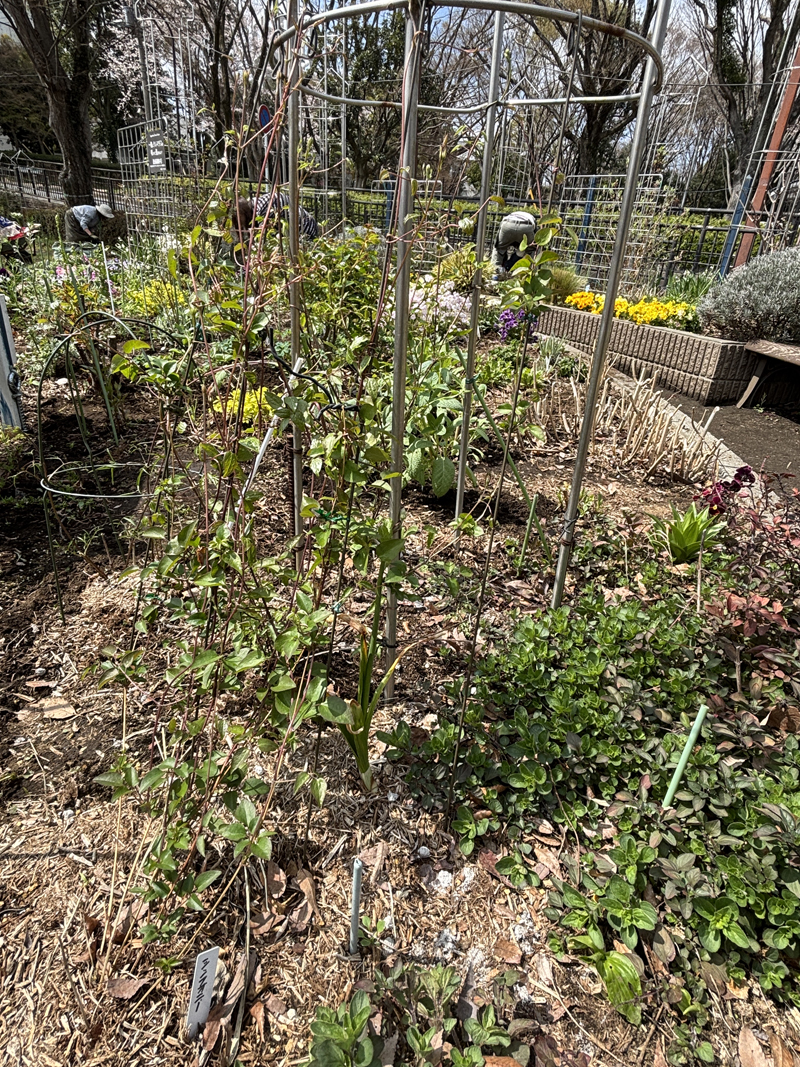 参加者14名、ガーデンは誘引と会員提供の草花の苗を植え付けました。