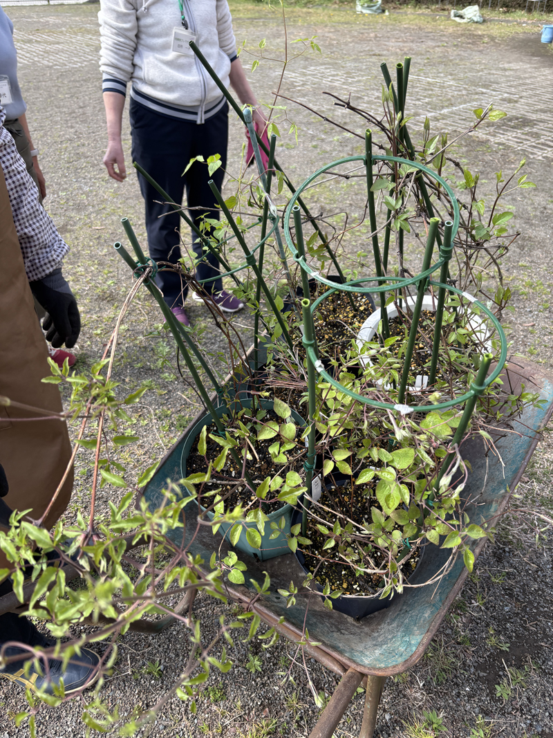 その後事務所入り口のクレマチスの枝を整理して、誘引し直し、薬剤散布についての勉強会も行いました。