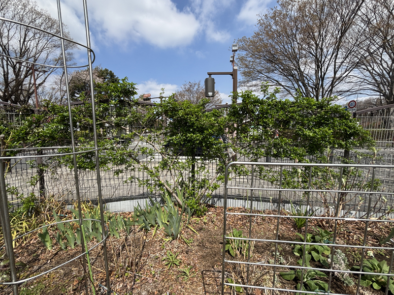 その後、事務所裏に置いてあるレスキュー苗達の蔓を整理して、誘引しました。