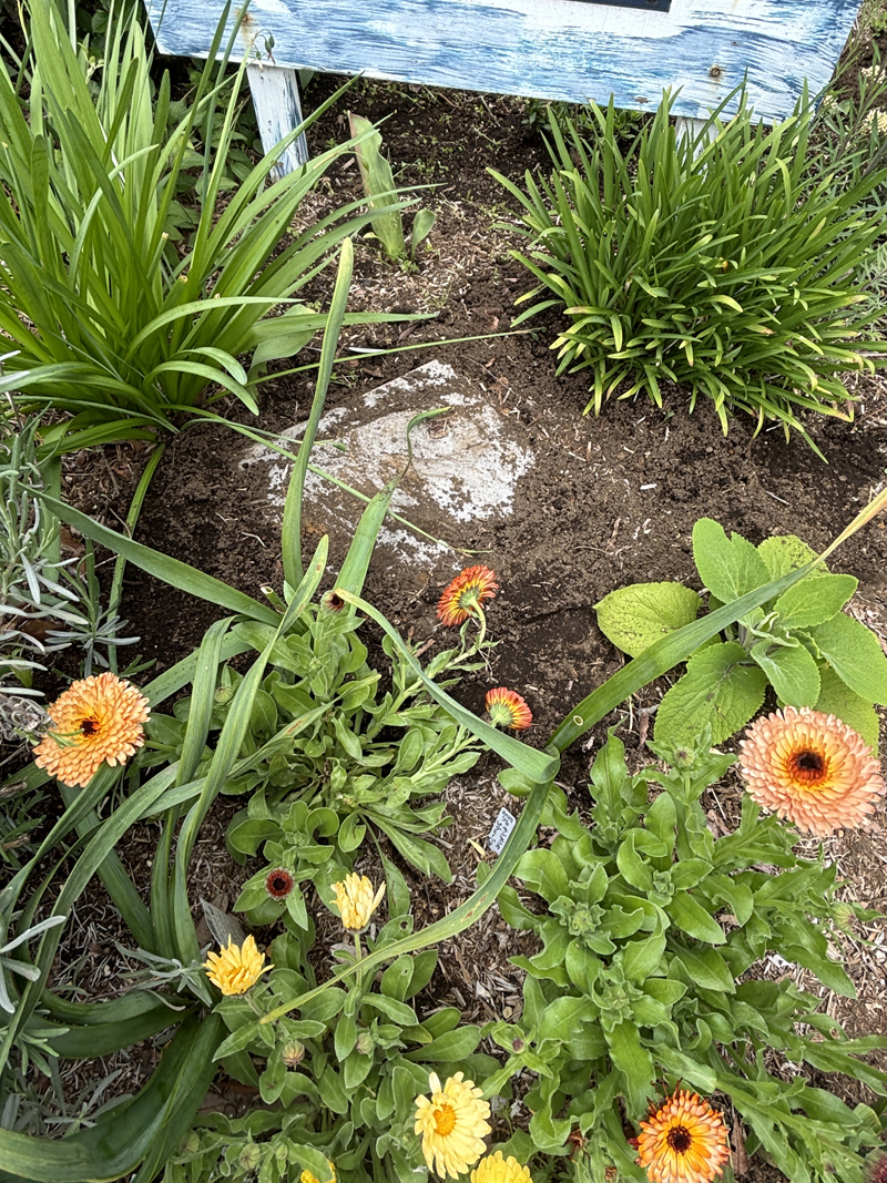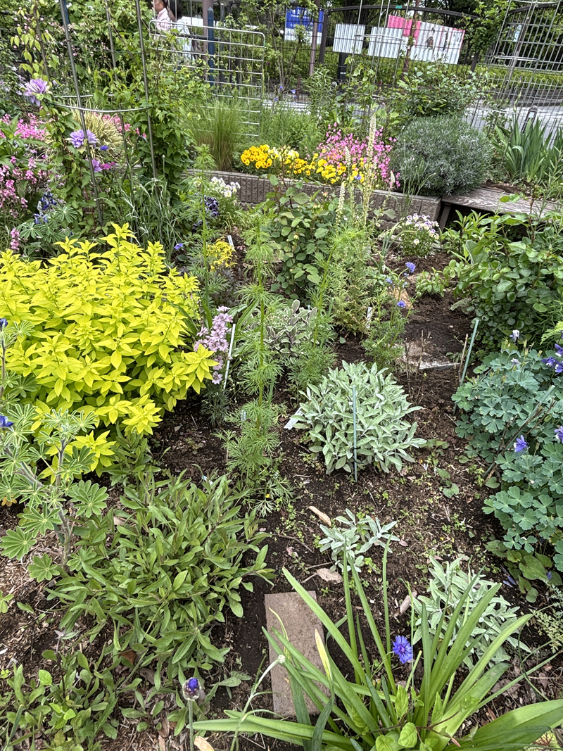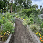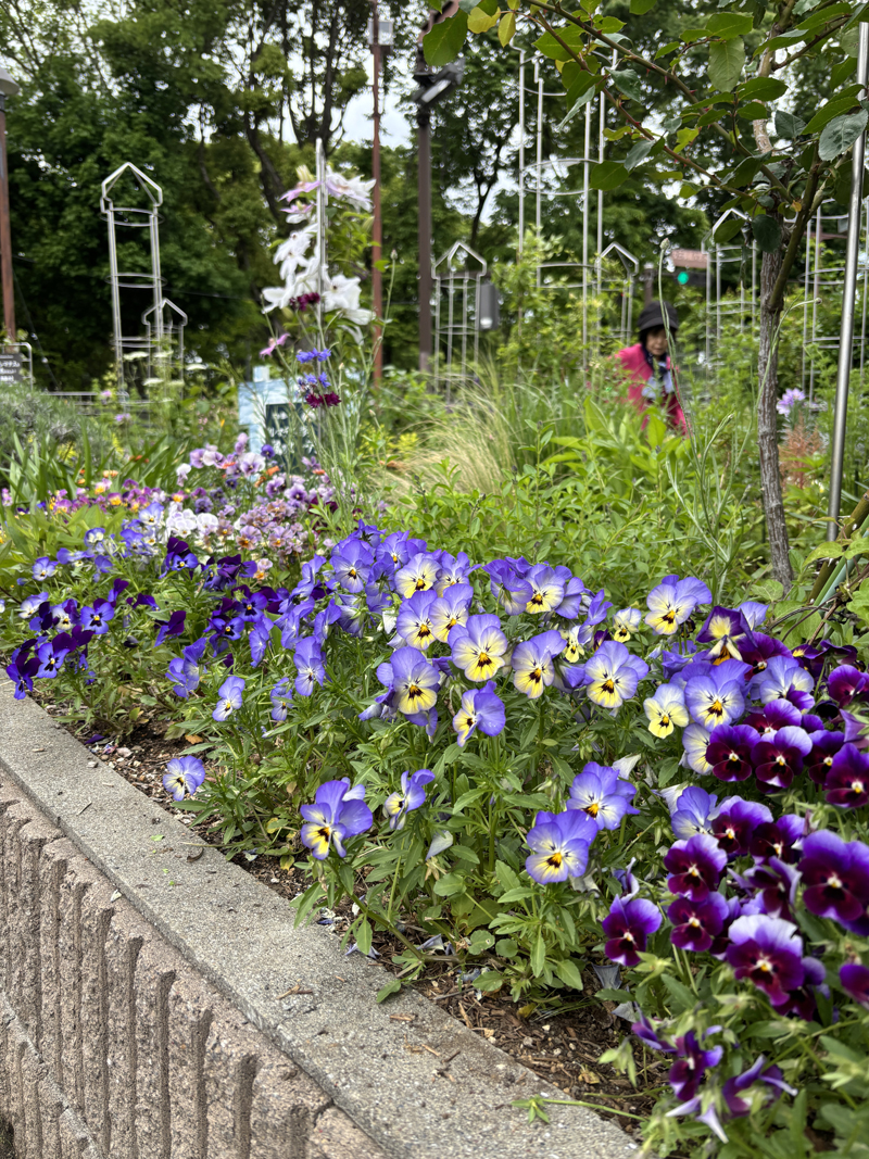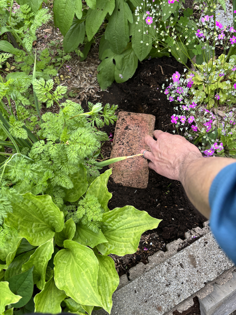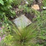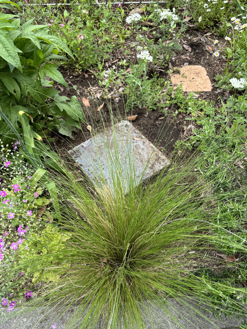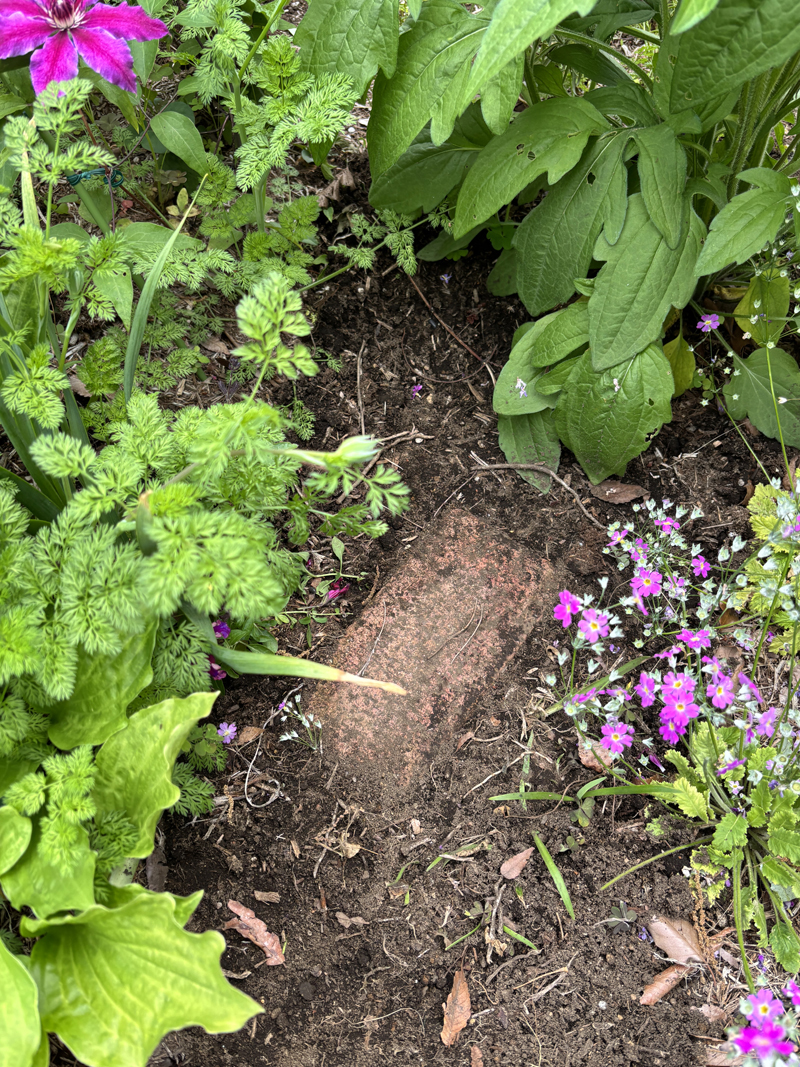 まず5人で手前の島のレンガの足場を決めて、堀り、はめ込みプレス。足運びを確認しながら作業中に便利な足場を作ってので、後ろの島にも取り掛かりました。(続きは次回)カラフルないろんなレンガがガーデンに取り込まれ、彩りを添えました。