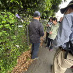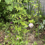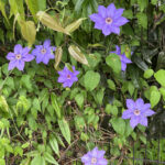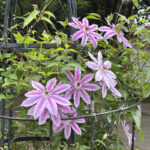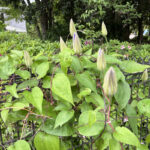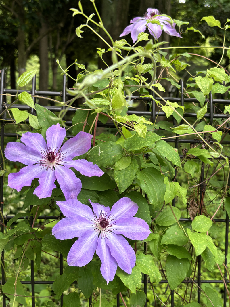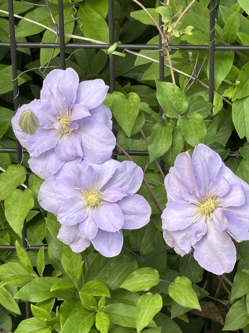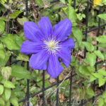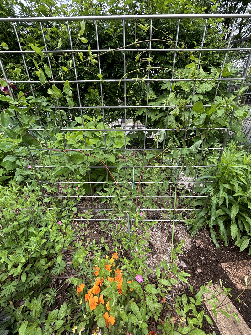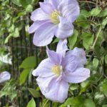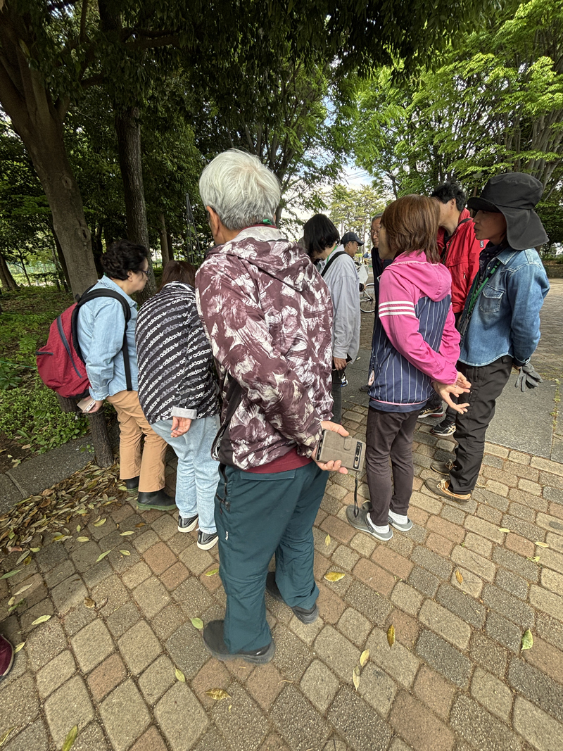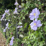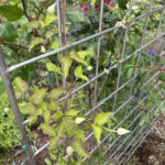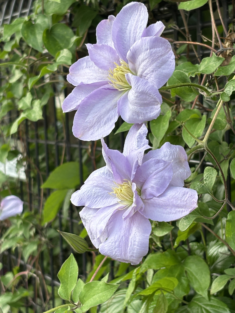 その後外に出てフェアで来場者の案内をするためのクレマチスガイド用のコースの確認と、咲きそうな花と咲いてる花の確認を公園管理の薮内さんも交えて実際に歩いて行いました。公園内のフェンスは早咲きが多いので咲きだしていました。