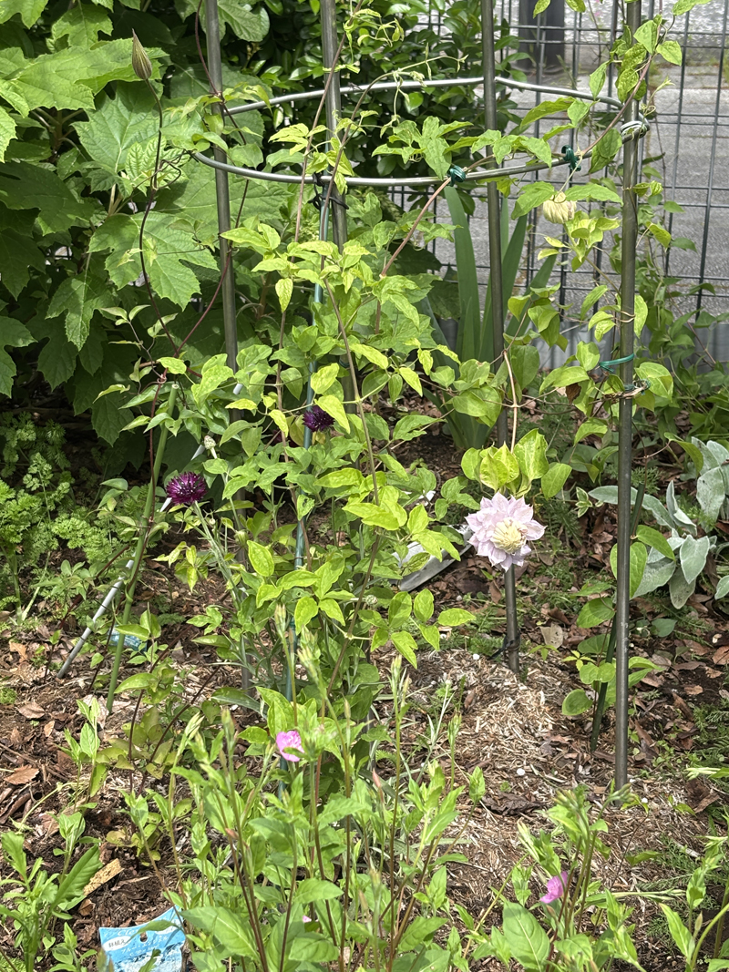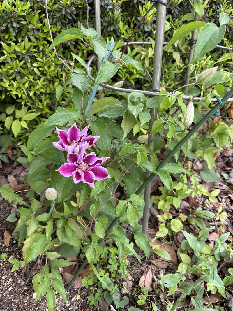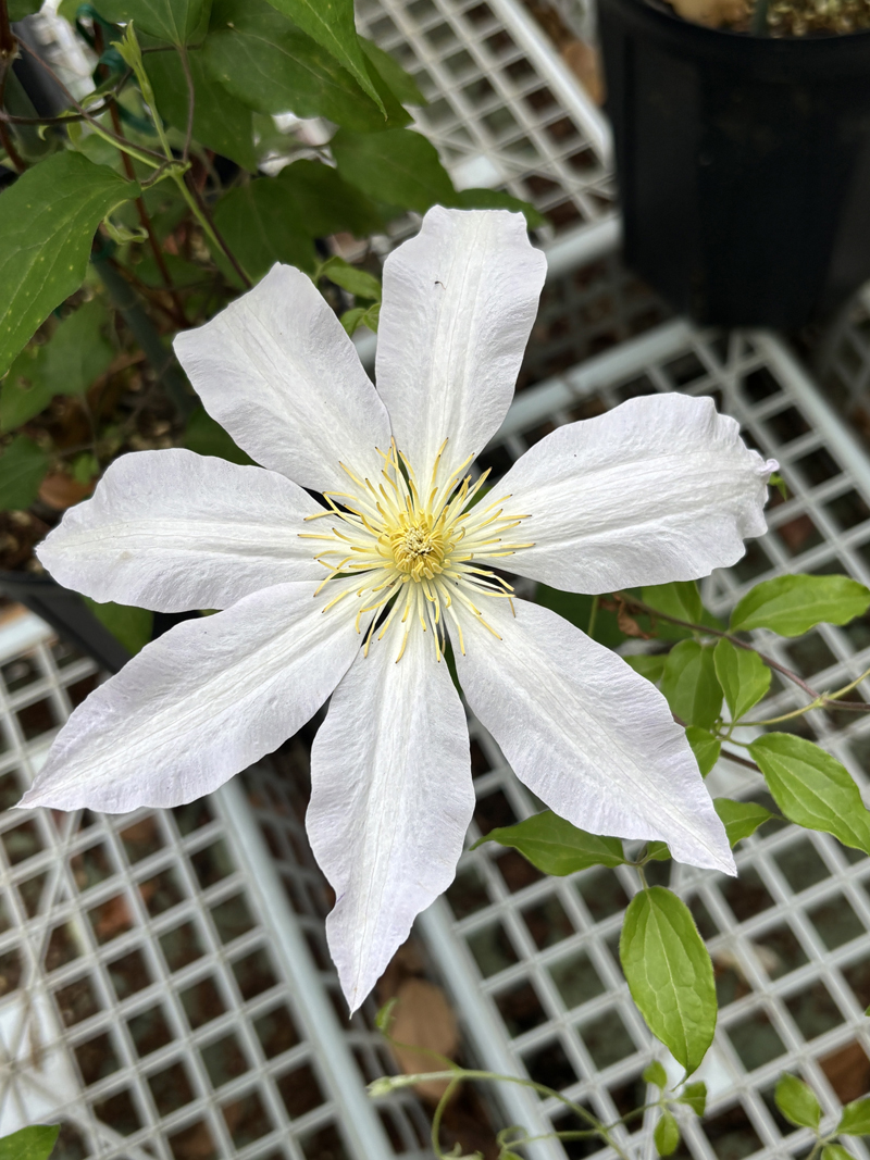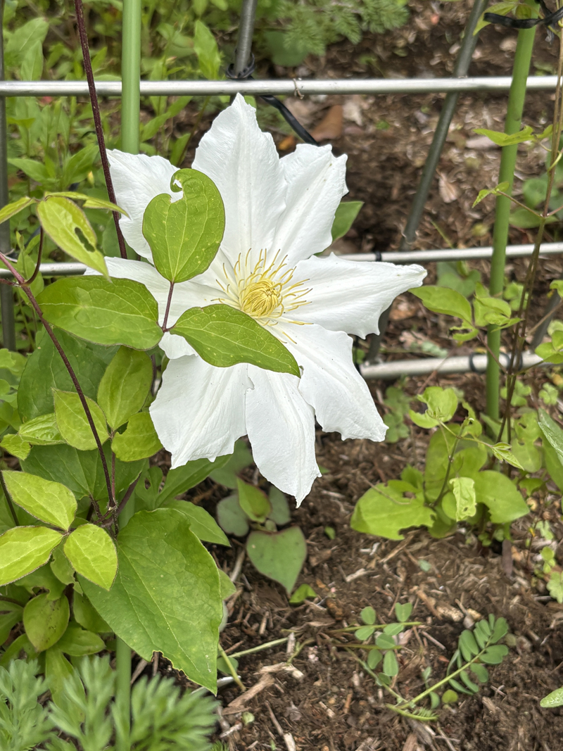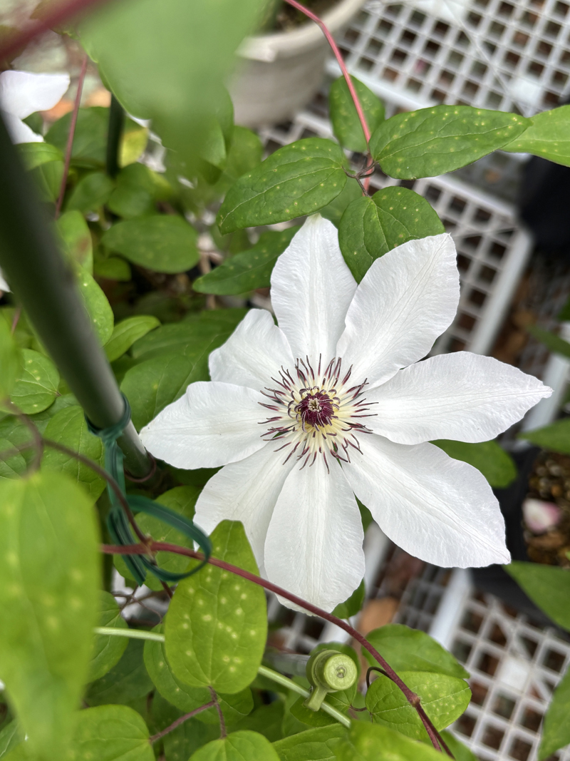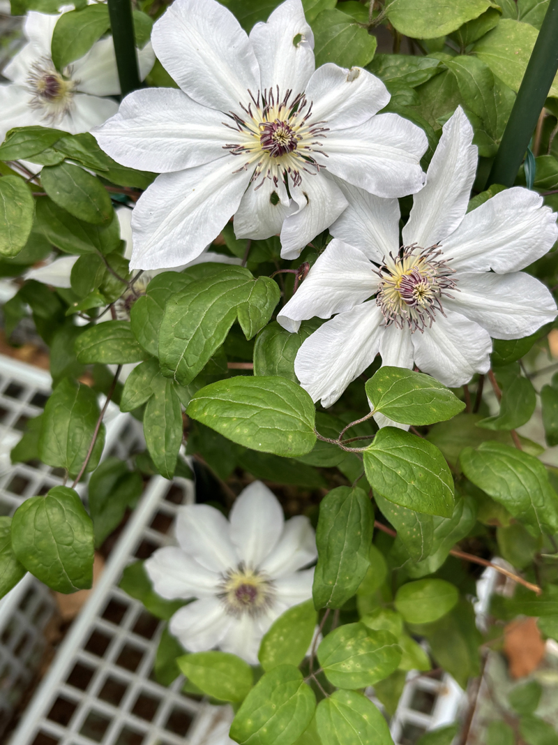 2月にレスキューしたクレマチス に花がついていました。真っ白な風車の様で美しかったですね。